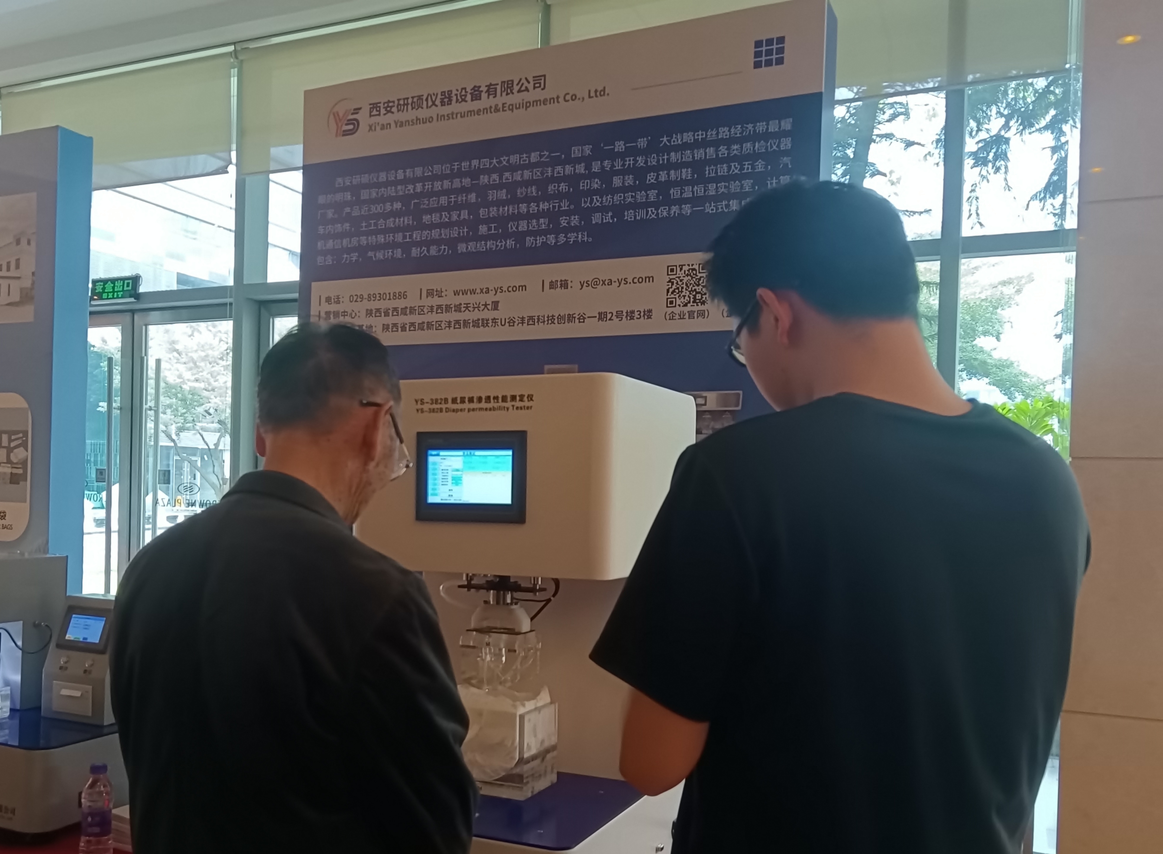 研硕仪器也展示了各类质检仪器,其中包括YS-382B纸尿裤渗透性能测定仪、YS-381型可冲散性能试验机(晃动箱)、YS826型液体穿透性测试仪等。展会现场,我司展台凭借兼具创新性与实用性的核心仪器备受关注,不少嘉宾驻足咨询、现场体验,工作人员全程细致讲解,与来访客户深入对接需求。